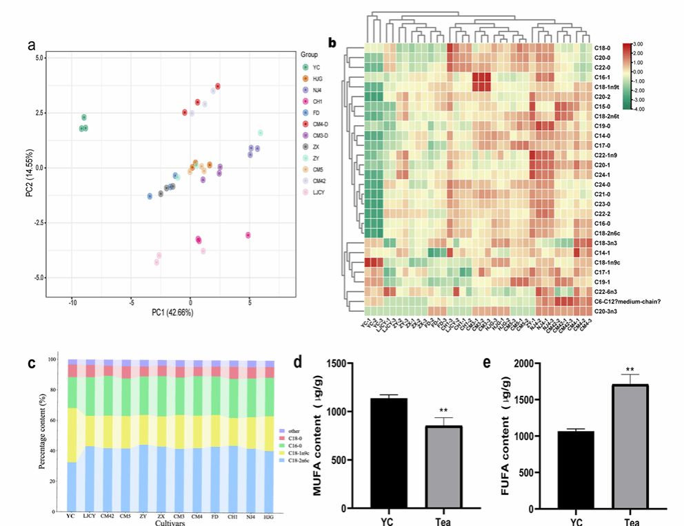 图2:茶树品种与油茶(YC)脂肪酸组成分析