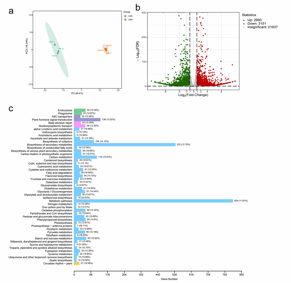 图5. 两个茶树品种转录组的多变量统计分析