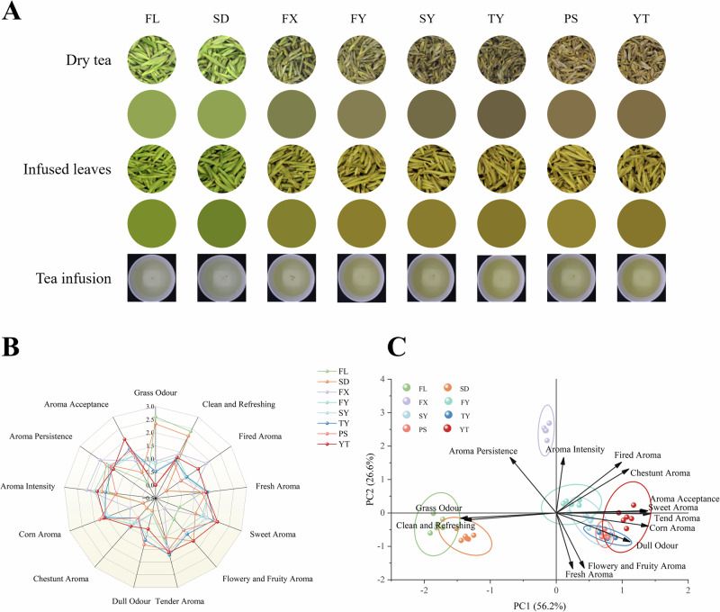 图2. 蒙顶黄芽加工过程中感官品质及风味特征形成的变化