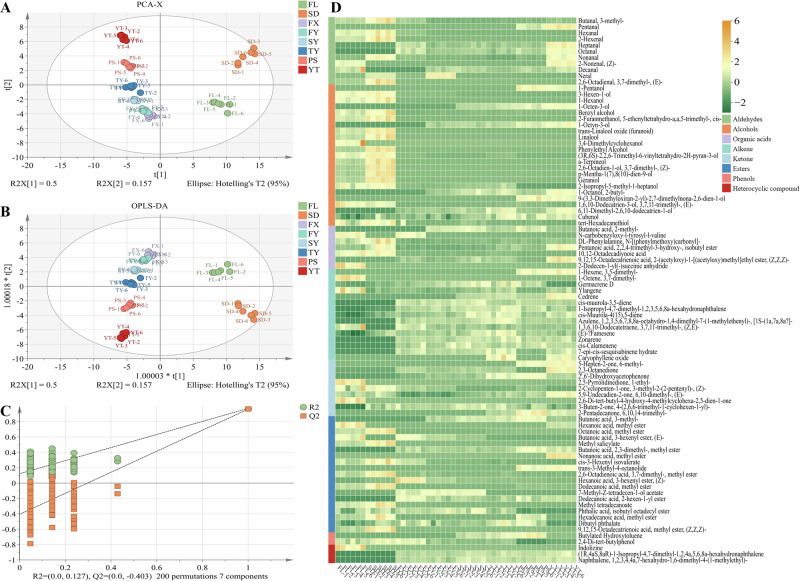 图4.蒙顶黄芽加工样品中挥发性化合物的多元分