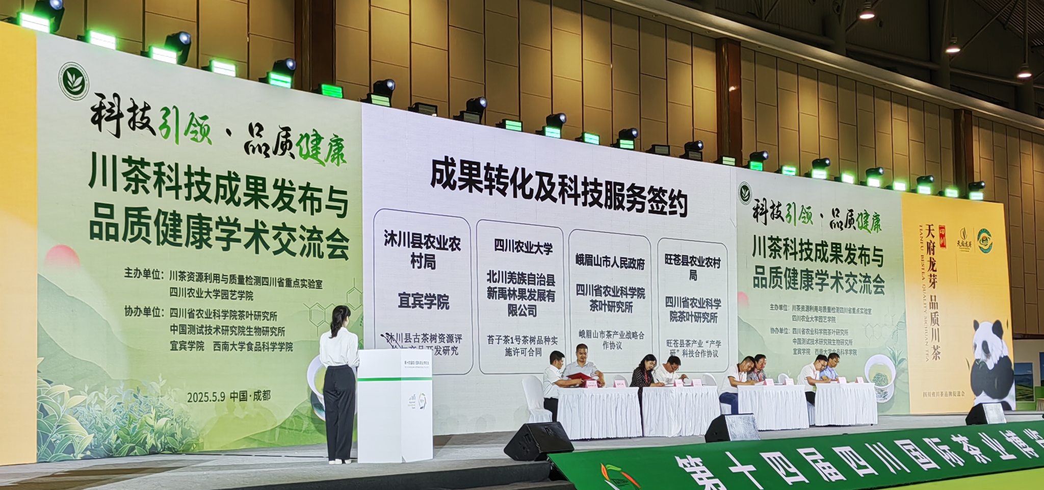 活动还现场举行了“川茶科技成果转化及技术服务签约仪式”,川茶资源利用与质量检测四川省重点实验室各科研团队分别与峨眉山市人民政府,沐川县、马边县、旺苍县农业农村局,以及自贡市春兰茶业有限公司、四川印象川之味茶叶有限责任公司、北川羌族自治县新禹林果发展有限公司等川茶产业链主、链属企业签订新品种授权转让、技术转化和科技服务合作协议,为各地茶产业链发展提供科技支撑。此外,交流会还展示了我校在茶学本科和研究生人才培养方面的成效。